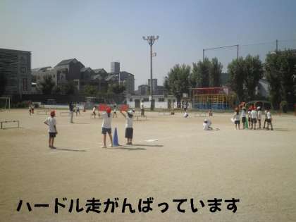 先週に引き続いて,体育でハードル走をしています。今日は,準備を短時間に終えて練習に入りました。