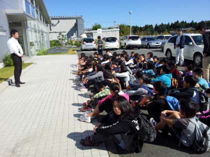 見学前の説明を受けています。