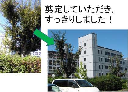 教職員ではなかなか剪定が進まないところ,本当に助かりました。
