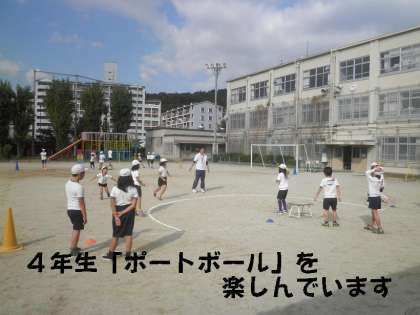 4年生の秋の体育は,ボール運動で「ポートボール」をしています。