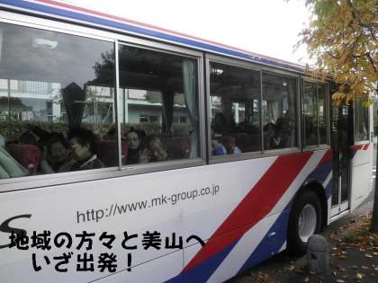 恒例の地域行事「ふるさと美山体験ツアー」に本校の子どもたちも参加して9時前に出発しました。