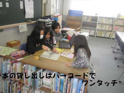 貸し出しもバーコードで簡単にでき,委員会の子どもたちも楽しんで仕事をしてくれています。