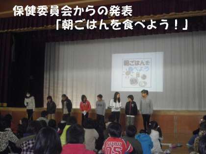 保健員会は,「朝ごはんを食べよう!」とスライドを見せながら,楽しい発表をしてくれました。