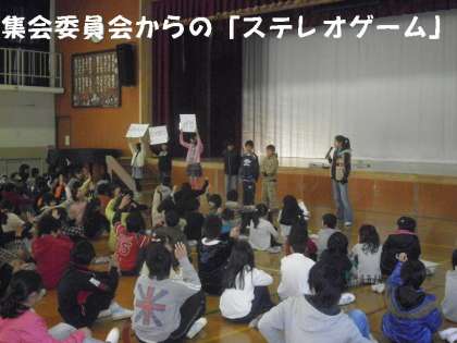 集会委員会は,いつも楽しい集会ゲームです。今日は「ステレオゲーム」をして盛り上げてくれました。