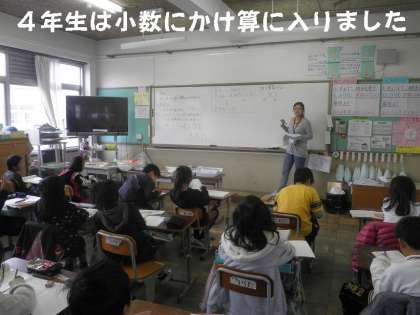 4年生では,算数で「小数」の学習をしています。大事なことは,たし算とかけ算の筆算の違いを理解しなければなりません。小数点でそろえるのか?小数点を無視して数字をそろえるのか?頭の中でしっかり整理して取り組んでいます。