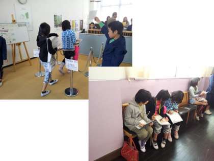 各ブースで働いている子どもたちは,お客さまの接待や呼込みをしたり,『住民登録』や『収支記録張の記入』,『新聞記事の作成』などの事務仕事をしたりしています。