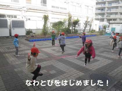 1年生みんなで取り組みます。寒さに負けずに元気にとんでいます。