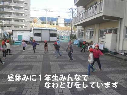 休み時間に1年生は,中庭でなわとびをはじめました。