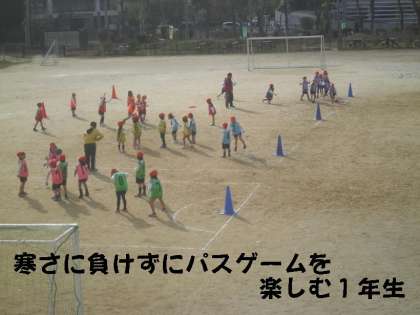 そんな中,運動場を走って体を温めたあと,大好きなパスゲームで楽しみました。