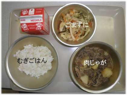 「むぎごはん」「肉じゃが」「ごまずに」