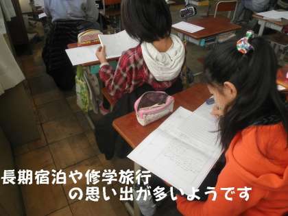 「長期宿泊学習」「修学旅行」「運動家の組体操」「部活動」など,いろいろな思い出をつづっています。