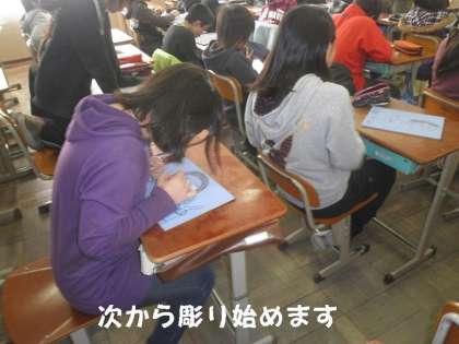 他学年より少し遅れましたが,5年生も木版画にとりかかっています。
