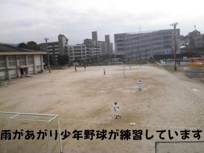 昼前に雨もあがり,運動場では少年野球が練習をはじめました。