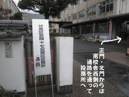 今日は第46回衆院選の投票日です。本校体育館も「伏見区第47区投票区投票所」になっています。