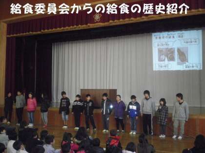 給食委員会は,給食の歴史について紹介してくれました。