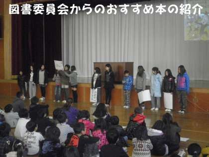 委員会からの発表は,「給食委員会」「図書委員会」「集会委員会」の3委員会でした。