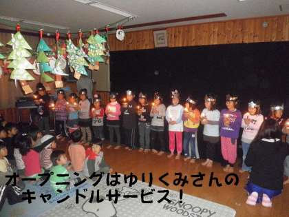 オープニングセレモニーは,年長さんのキャンドルサービスではじまりました。そして,園児がクリスマスソングを披露し,5年生はそのお返しにリコーダー演奏をしました。