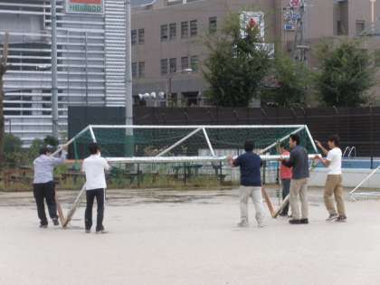 現在,3校時(10時45分)からの授業開始に向けて,全教職員で校内点検をし,昨夜に校舎の中に避難させたプランターや遊具類の移動,運動場のサッカーゴールやネット,ウサギ小屋等の現状回復をしています。子どもたちが登校するまでには,元通りに回復したいと思っています。