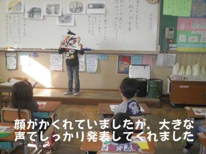 冬休み前の最後の国語の時間に,「たぬきの糸車」の発表会をしました。自分が気に入ったところはどこか?それはなぜか?を一人一人みんなの前で発表しました。