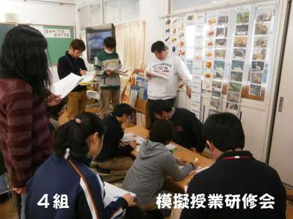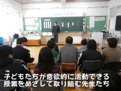 子どもたちが帰ったあと,4くみの教室に先生たちが全員集まり,本校恒例の模擬授業研修が行われました。