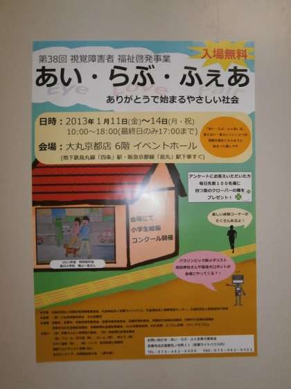 この催しは,京都視覚障害者協会や京都ライトハウス等が主催して,京都大丸のイベント会場で毎年行われる催しです。
