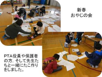 お手伝いに,PTA役員さんや保護者の方もかけつけていただきました。そして,先生たちも一緒にたこ作りをしました。