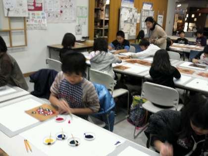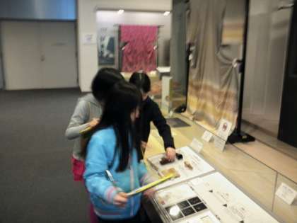 地下の伝統産業会館に入り,早速1組2組に分かれて,京都の伝統工芸の体験です。