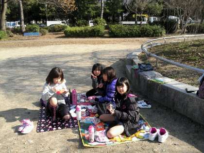 体験学習が終わり,12時15分から近くの公園で,子どもたちみんなのお待ちかねの『お弁当タイム』です。