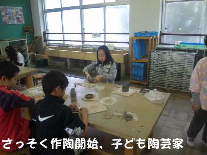 毎年お世話になっているアートセラ移動陶芸の先生にご指導いただき,子どもたちは思い思いの作品を作っていました。