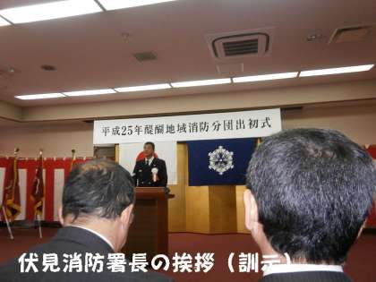 本日,10時から醍醐消防分署講堂で,新春恒例の醍醐地域消防分団の「出初式」がありました。