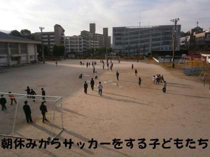 昨日は午前中に雨が降り続いて,運動場で遊べませんでしたが,今日は朝から子どもたちが運動場に出てサッカー等をしています。
