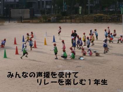 今日は,朝1時間目の体育です。なわとびで十分アップして身体を温めてから,「リレー」の学習に入りました。