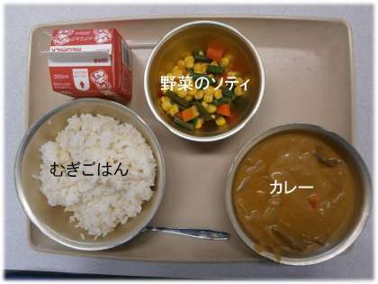 現在 ごはん給食が週4回になり,むぎごはん,玄米ごはん,