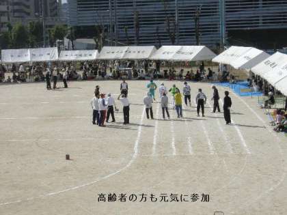 子どもから高齢者まで,楽しく和やかに交流して一日を過ごされた区民運動会も最終種目になっています。