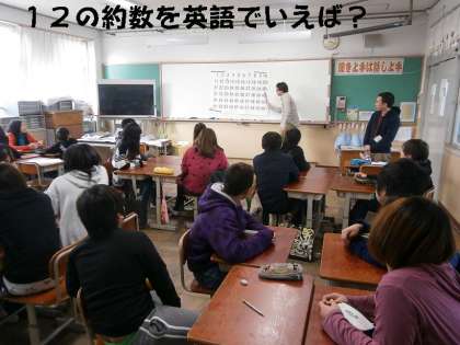 12の約数は?すべて英語で答えよ!なんて問題が出されて,全員起立のもとで発表していました。