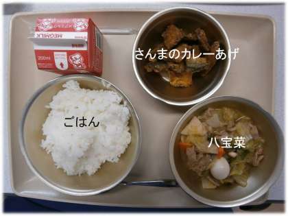 「ごはん」「八宝菜」「さんまのカレーあげ」