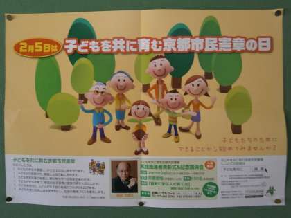 2/5(火)に「子どもを共に育む京都市民憲章」の実践推進者表彰式&記念講演会が下記のとおり実施されます。