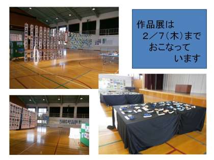 2/7(木)まで,体育館でおこなっています。是非,子どもたちの力作を観賞ください。