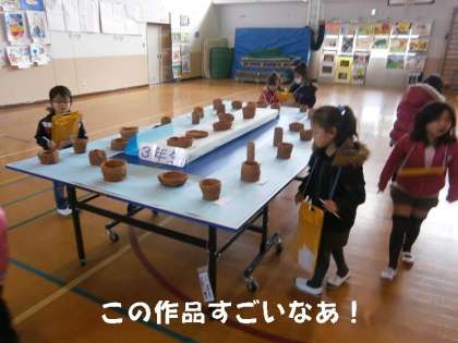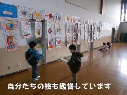 今日から作品展がはじまりましたが,さっそく1年生が1番乗りで,作品展の鑑賞をしました。