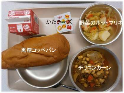 「黒糖コッペパン」「チリコンカーン」「野菜のホットマリネ」「かたチーズ」