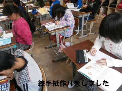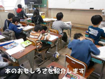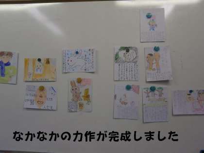 自分の気に入った本を紹介する取組です。図工と国語の授業が一緒になった時間で,子どもたちも喜んで取り組んでいました。