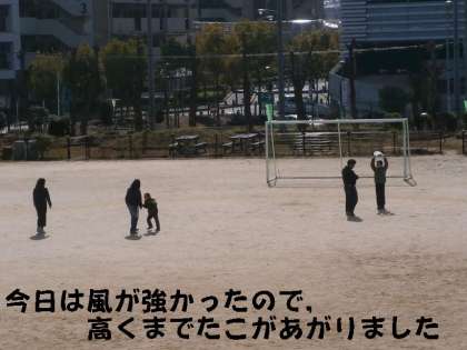 とても強い寒風がふく中でしたので,たこはあっという間に高く上がりました。体育館の屋根より高く上がりました。