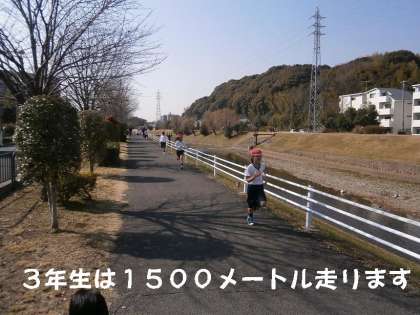3年生は,今年から500メートル距離が長くなり,1500メートルを走ります。スタート地点から,折り返し地点ははるか遠くになりました。