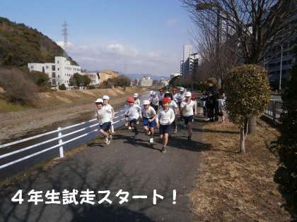 中間マラソンのあとの試走でしたが,スタミナいっぱいの子どもたちは,ゴールしてからも平然としていました。