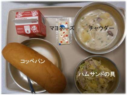 「コッペパン」「チャウダー」「ハムサンドの具」