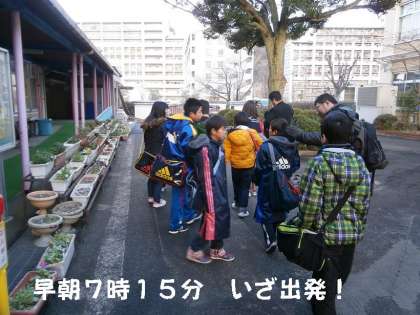 本校の部活動 柔道部の子どもたちも9名も早朝7時15分に集合し出発しました。