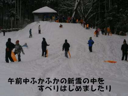午前中は、新雪を踏みしめての「そり滑り」や「かまくら作り」ではしゃぎまわりました。