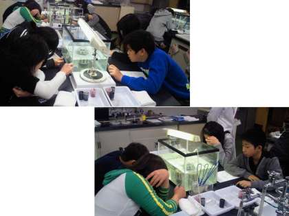 歩脚を使って歩いたり,遊泳脚を使って泳いだりする様子や体が透明であるという特徴を生かして,胃,鰓,心臓を観察し,生命の神秘に迫ります。