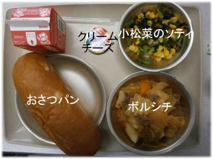 「おさつパン」「ボルシチ」「小松菜のソティ」