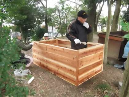 今日は,現在使用している堆肥ボックスが老朽化しているということで,地域の方々により堆肥ボックスを新しく作り直していただきました。